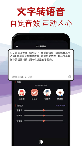 3、文字转语音:文字内容很容易转换成音频文件,各种音效设置,声音动人心。