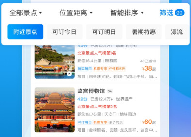 3.旅游度假:提供境内外自由行、跟团游、当地参团游、周边游等多只类型的旅游度假产品选择,让用户可以根据自己的需求进行选择定制。