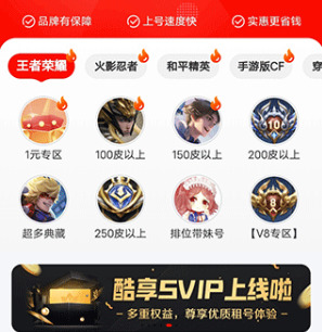 1、全类游戏覆盖率-提供当前热门游戏(王者,lol、和平精英等)、热门新游账号租赁。