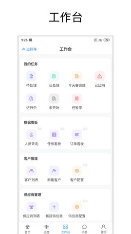 1、在线协作:全终端平台,随时随地在线跟单,实时跟踪订单进度,一目了然。
