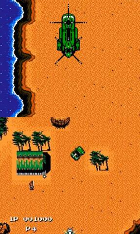 4、在出场方面,FC是由直升机空投而来,而街机版则是空投战车,飞行员空降,显然FC的档次比较高。