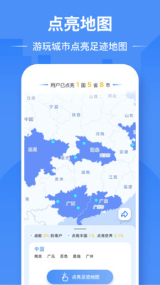 1、点亮世界地图: 标记你游玩过的每个城市和国家,让世界地图闪耀你的足迹。