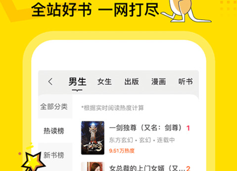 海量小说随心阅读,语音朗读更护眼,随时随地听小说。