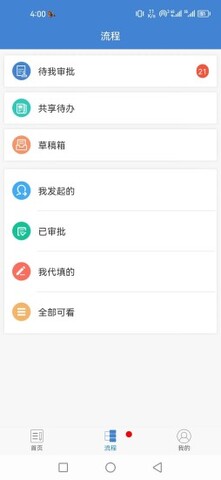 2、流程审批:在手机app中提供工作流程审批功能。