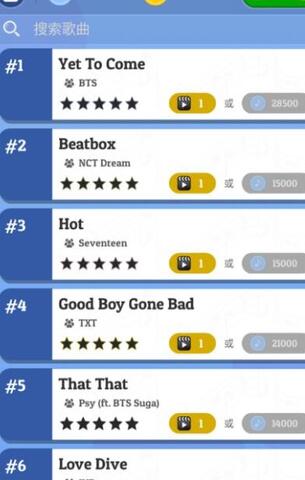 3.有各种各样的Kpop、Jpop和西洋流行歌曲可供玩家选择。