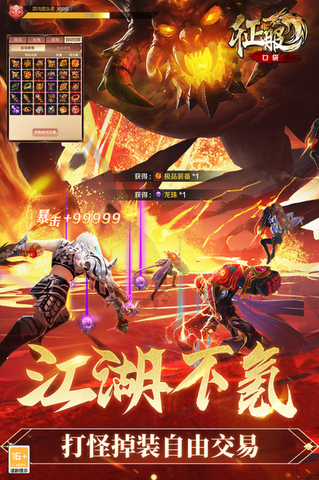 全屏收割,全屏掉落,最好的装备全靠打,开放式游戏玩法,与兄弟一起称霸指尖江湖。