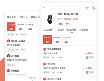 2、支持多种电子商务平台的商品比价,能够满足大多数用户的购物需求。