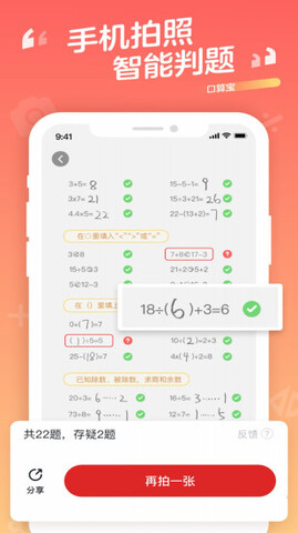 2.手机拍照,1秒检查,只需1秒,轻轻一拍,口算批改全解决。