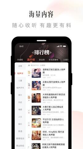 软件拥有海量的听书资源,让用户可以自由选择听书,在这里找到自己喜欢的声音。