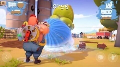1、萌系风格的竞技游戏,采用多人在线玩法,大家可以选择扮演小猪或农民。