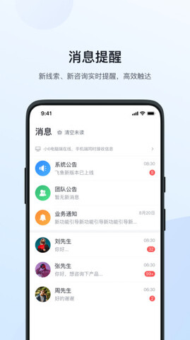 飞鱼CRM是一款专注于基于大数据商业管理的营销软件。软件帮助企业有效管理整个销售流程,包括销售线索的分配、回访、自动清洗和标记,支持与其他CRM系统进行对接,以灵活满足客户的商机管理需求。飞鱼CRM软件还提供一站式管理解决方案,能够提高用户的日常工作效率,帮助用户挖掘更多的客户。有需要的用户,就快来下载吧!