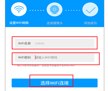 3、输入wifi对现有摄像头进行网络配置,选择wifi连接,等待完成;