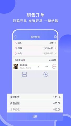 2、多种设备同时开单,可以支持多种组合支付方式,快速开单处理,当存货数量不足时报警。