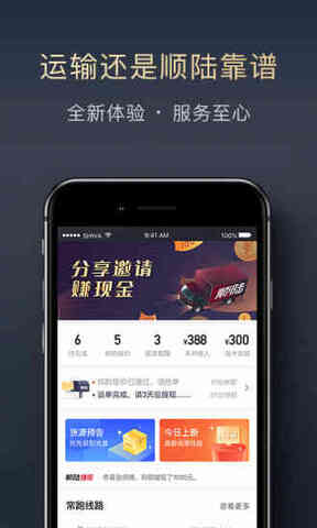 司机可以通过顺陆APP直接登录并接单运货,完成任务后即刻结算。