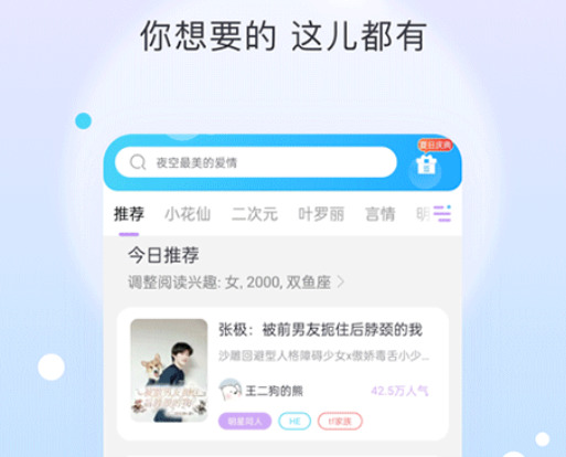 2.下载安装的软件会根据用户阅读爱好和习惯去推荐喜欢小说,让你不怕没有书看。
