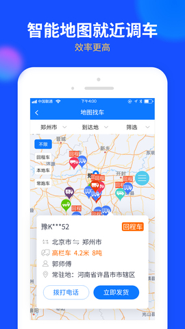 2.支持在线一键发布货源,百万物流司机实时响应接单。