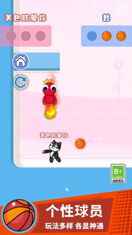 控制着自己的角色与对手进行对战,争取将篮球打入框中。