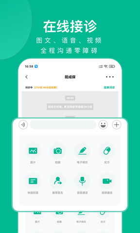 3、在线接待:与病人进行图文、语音、视频咨询,医患沟通效率更高。