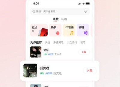 1、练习模式:重唱指定段落,只能系统地评分日韩粤语歌曲音标,免费下载安装后,帮助您快速提高唱功。