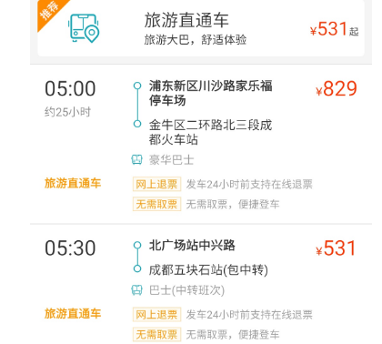 【汽车票】模块包含国内众多线路,提供车次查询和低价购票服务!