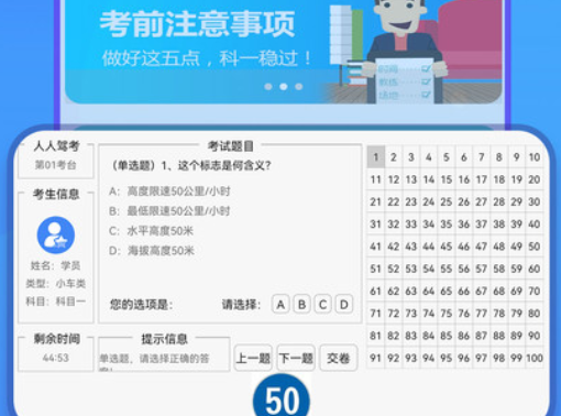 2.依据交管局考试规则出题,帮助上机考试轻松过,驾校模拟考试。