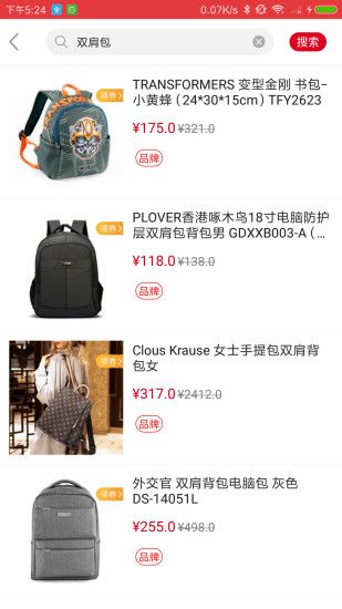 2、搜索商品、品牌名称,查看搜索结果。