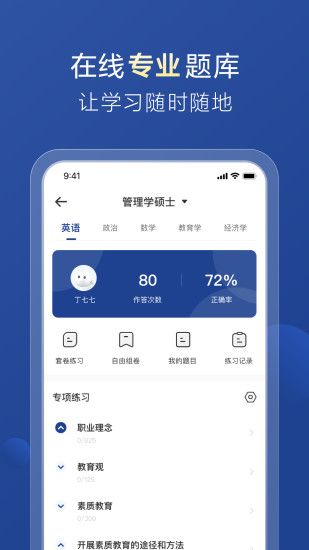 2.支持离线学习功能,用户可以在没有网络的情况下学习、练习和做题。