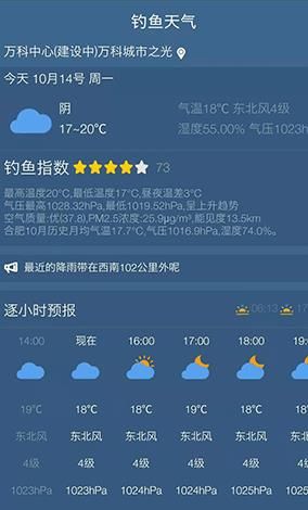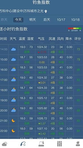 2.未来15天任意时间段的钓鱼天气一览无余,帮助您把握时机。