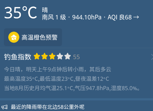 3.每日推送通知,帮助用户了解未来天气情况和钓鱼指数,制定钓鱼计划。