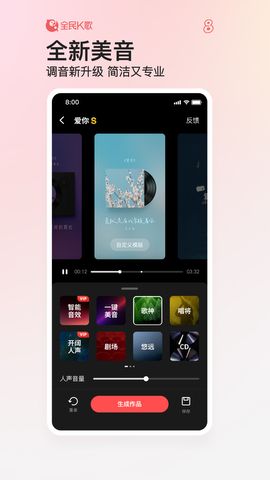 3、歌曲伴奏:高质量的伴奏和原唱音频给您最好的K歌体验。