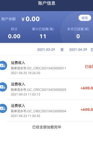 2.通过支付管理功能,查看和管理自己的运费收入,包括查询历史交易记录和提现申请等。