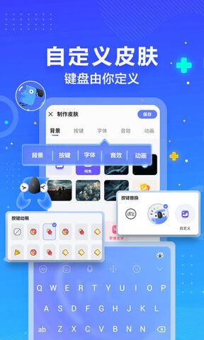 1、原创海量精致皮肤,支持自定义键盘背景,下载后,让你的输入皮肤独一无二。