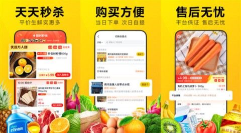 1.商品购买:用户可以在里面购买各种生鲜食品、家居用品、个护美妆等商品。