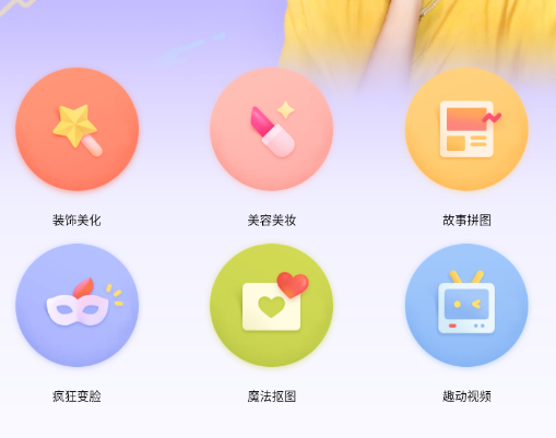 2.集自拍相机、美容美妆、消除法令纹、去水印、导入照片等多功能于一体。