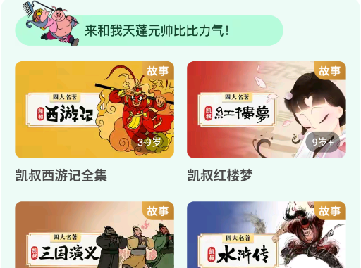 1.大量的优质儿童故事资源,包括西游记、神奇图书馆、每日小古文等。