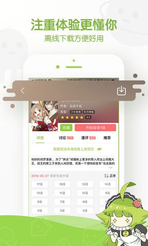 1.提供漫画离线下载,出门在外无网络同样能愉快的阅读下载完的漫画。