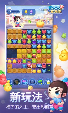 1、天天爱消除最新版免费手游采用经典的消除游戏玩法,只需要玩家通过点击或滑动屏幕,将相同的方块消除即可。