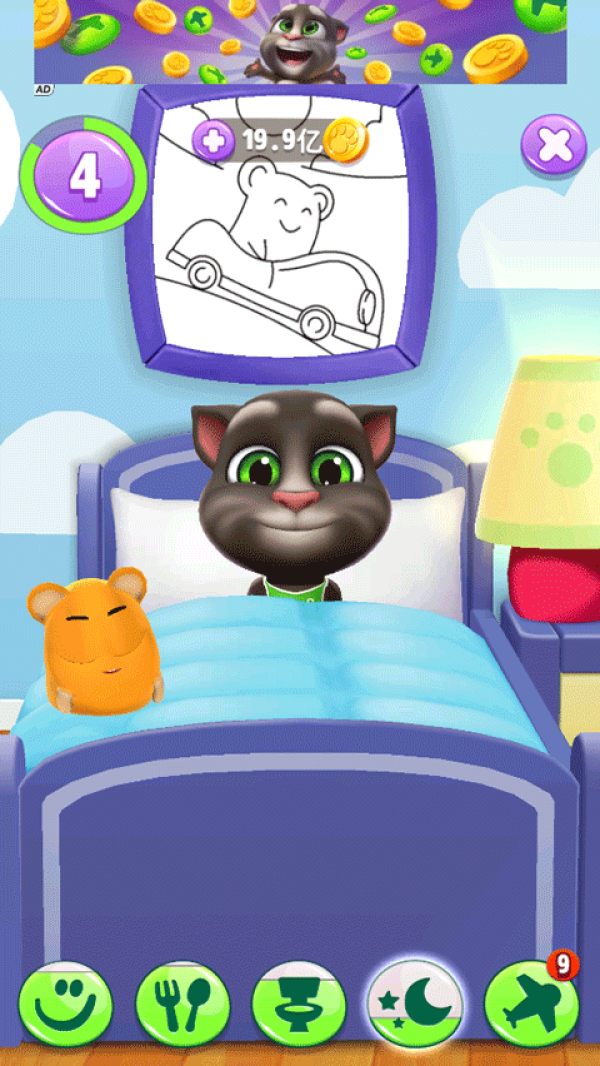 5、培养你的专属汤姆:与他一起免费玩游戏,喂他喜爱的食物,带他上床睡觉。