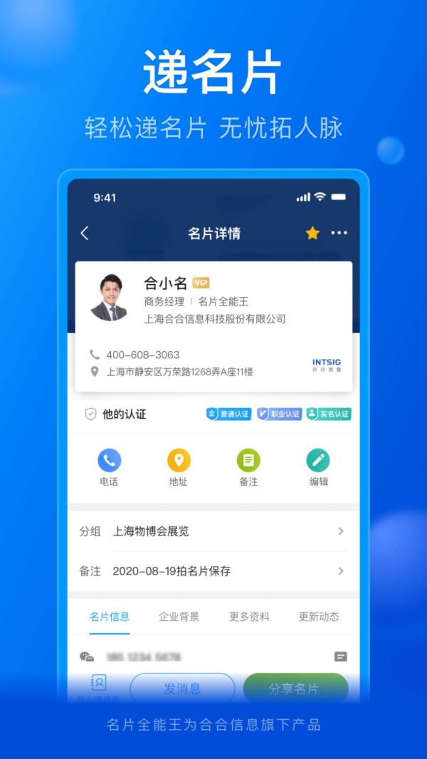 3、名片全能王手机版软件将名片数据与云端同步,用户可以随时随地访问自己的名片信息,不用担心数据丢失或遗忘。