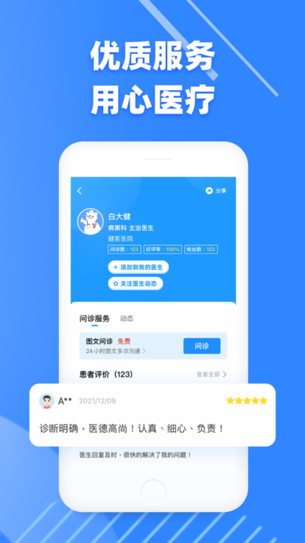3、专业医师一对一实时在线服务,免费快速解答您的健康问题。