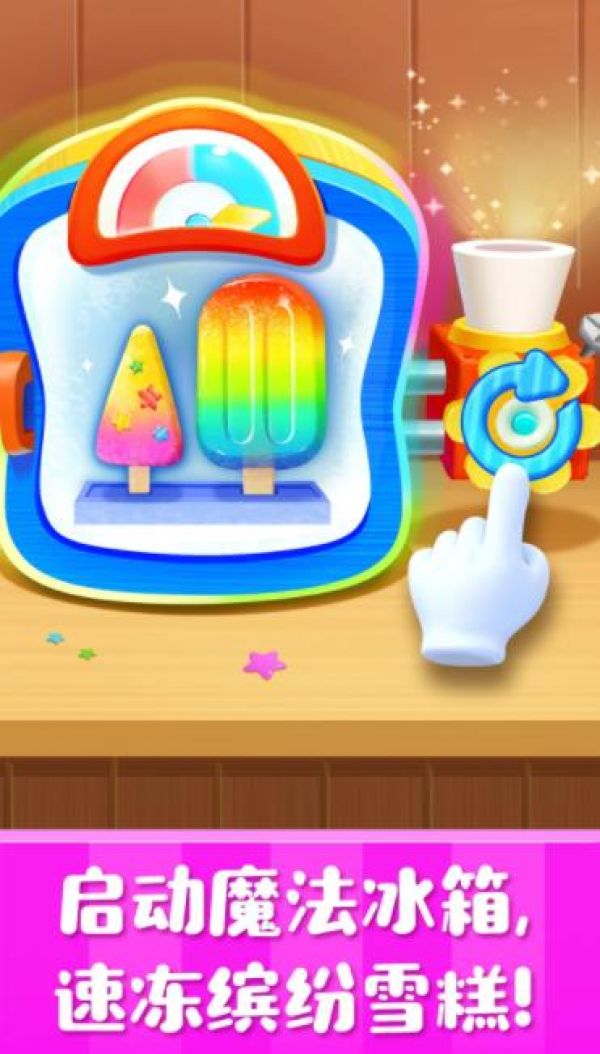 1.混合彩色果汁,学习颜色的形成,启动冰箱,冰爽雪糕即将完成。