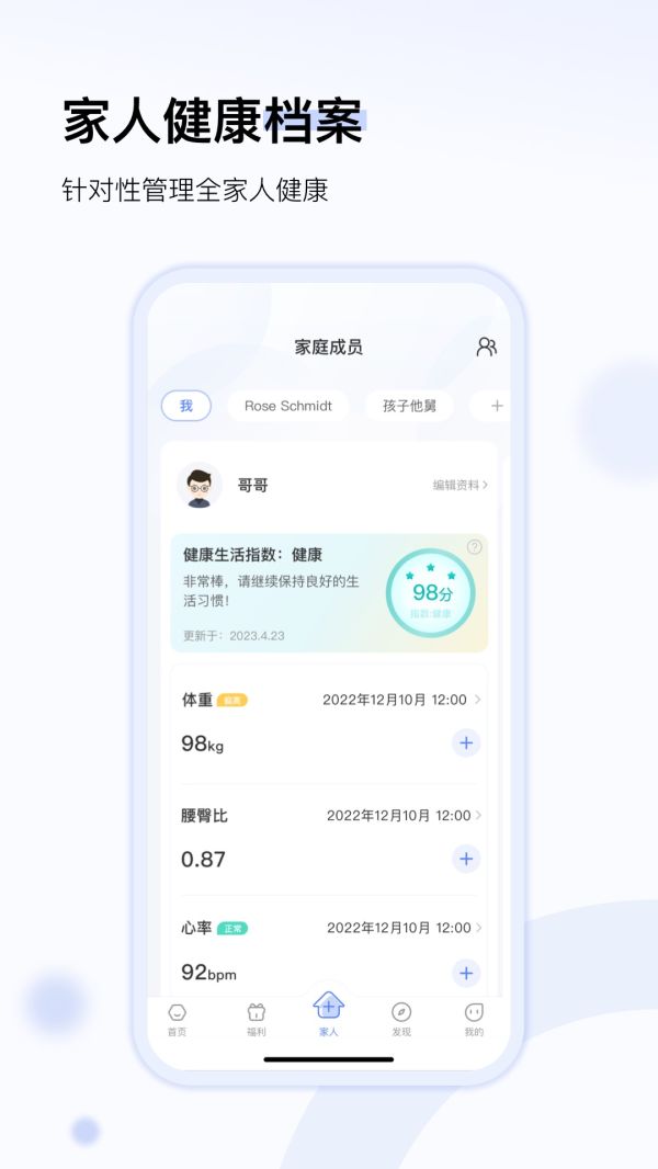 1、支持多人使用,监控和管理您的家庭成员健康。