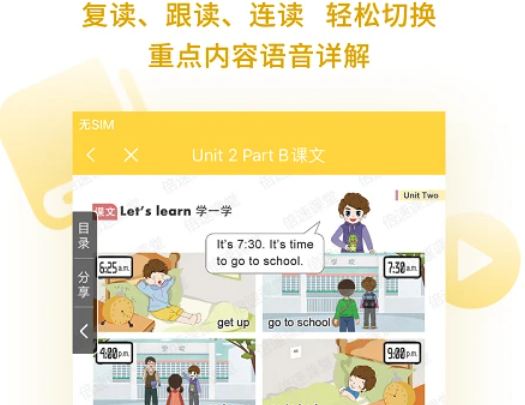 2.播放功能科学,可以随意播放课文中的单词、句子等。