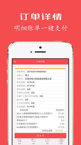 1、订单详情:明细账单一键支付。