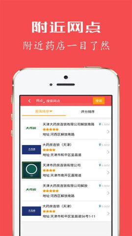 4、附近的网点:附近的药店一目了然。
