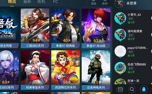 1、拳皇97、98、三国战纪、街头霸王等网络实时在线对战。