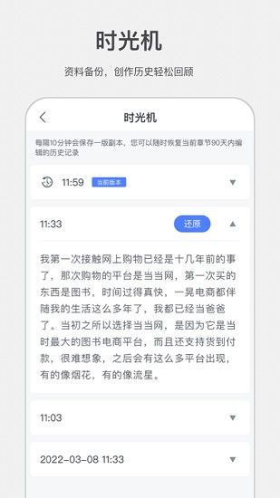 实时存储,创作内容的历史版本一目了然;