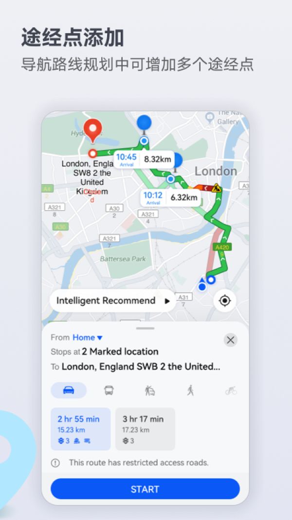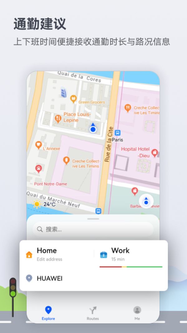 1.精准导航:Petal Maps提供全球范围内的高精度导航,依据实时交通信息为用户规划最优路线,支持步行、驾车、骑行、公共交通等多种出行方式。