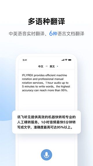讯飞听见APP是一款集录音转文字、实时翻译、同传、云会议、字幕等功能于一身的智能会议助手。通过这款APP,用户可以轻松实现高质量的语音转文字,无论是会议、讲座还是采访,只需一键录音,即可将语音转化为文字,节省了大量的时间和精力。同时,该应用还支持实时翻译功能,可以轻松实现中文和英文之间的互译,让用户与外国人交流无障碍。