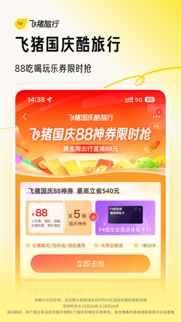 1.智能行程规划:飞猪购票App可以根据用户的需求,提供智能行程规划,包括酒店预订、交通安排等,让用户的旅行更加轻松愉快。